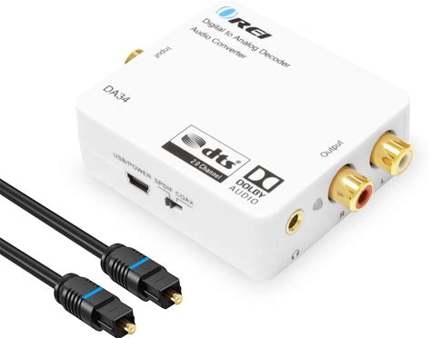 Digital To Analog Audio Decoder By OREI, Convert Decode Dolby Digital Audio SPDIF/Coaxial 5.1-Channel Input To RCA l/r/3.5mm Headphone Output Converter - DA34