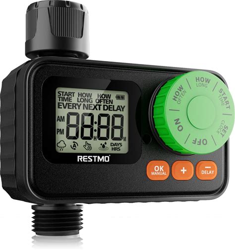 RESTMO Sprinkler Timer, Programmable Water Timer For Garden Hose, Automatic Control | Manual ON/Off | Rain Delay For Outdoor Faucet, Drip Irrigation