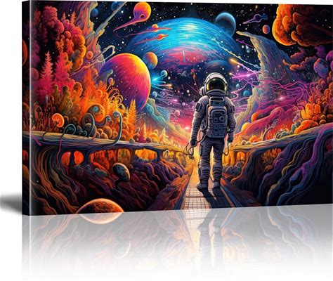 HSFFBHFBH Astronaut Space Canvas Wall Art - Psychedelic Cosmic Landscape Painting - Vibrant Fantasy Sci-Fi Home Decor Print For Living Room, Bedroom,