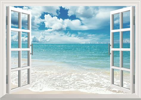 FLFK Fake Window Wall Sticker - Summer Beach Faux Window Wall Mural For Wall Decor, Stick And Peel Wall Decals,80"X60",Set Of 5 Sheets