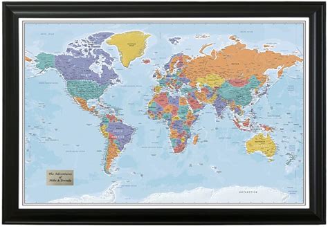 Map - World Wall Poster, 24.3L" X 35.8W", Black Framed Version